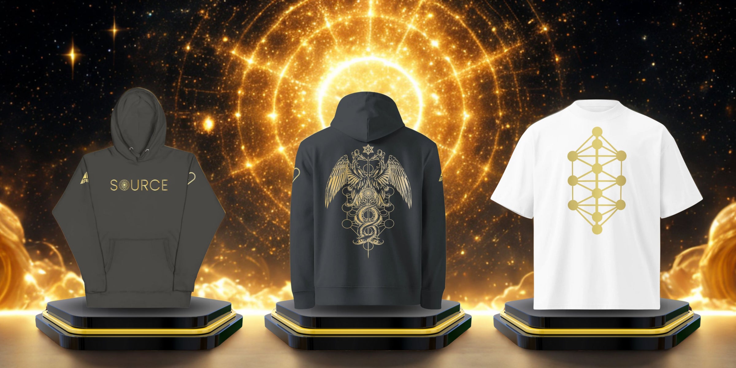 Each garment carries Intention Woven Into Form, Light Encoded in Thread, awakening the Dormant Source Within.